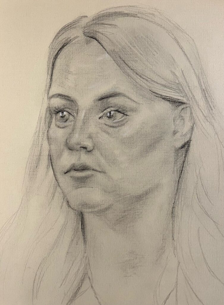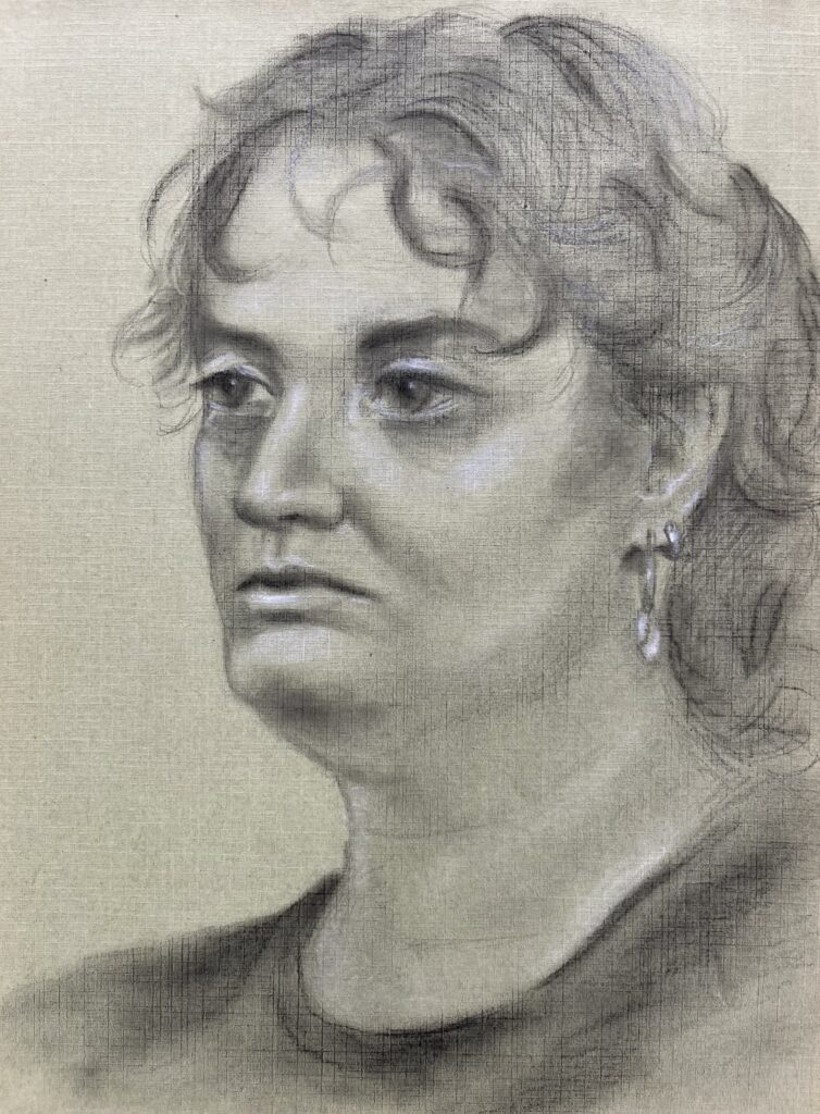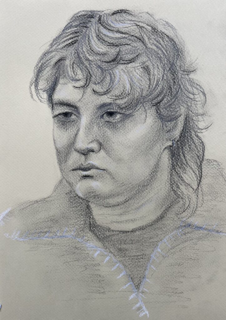“Sarah” pencil and charcoal on paper, 2025, A4