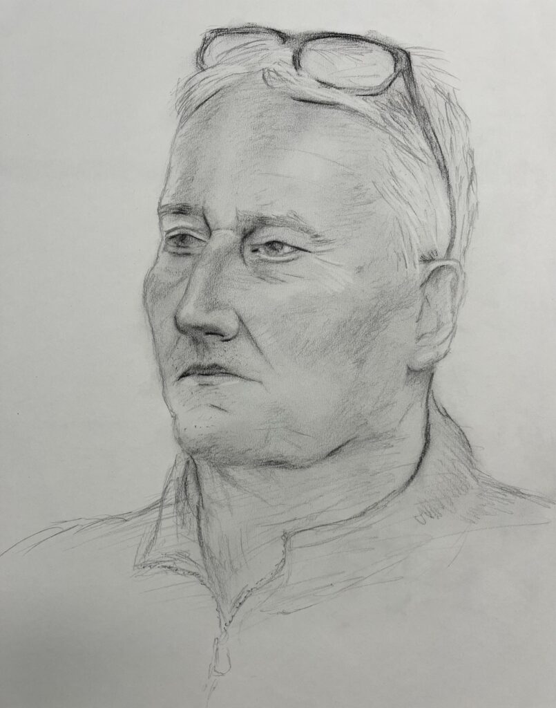 “Tim” pencil and charcoal on paper, 2026, A3