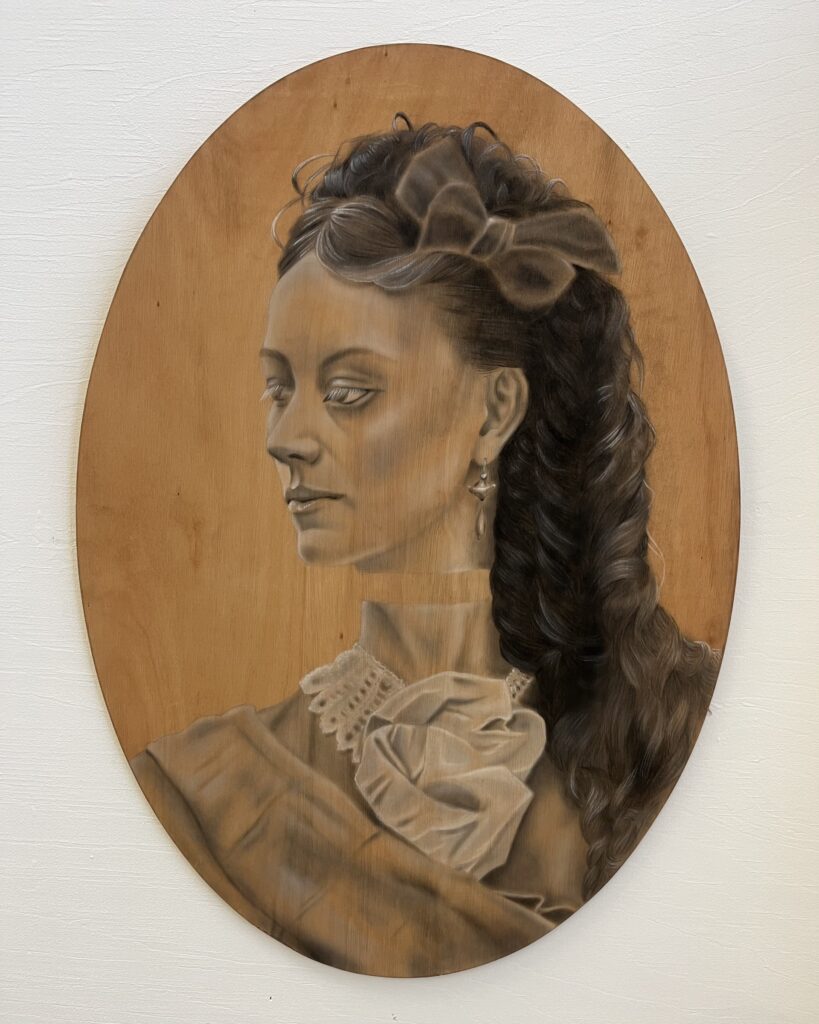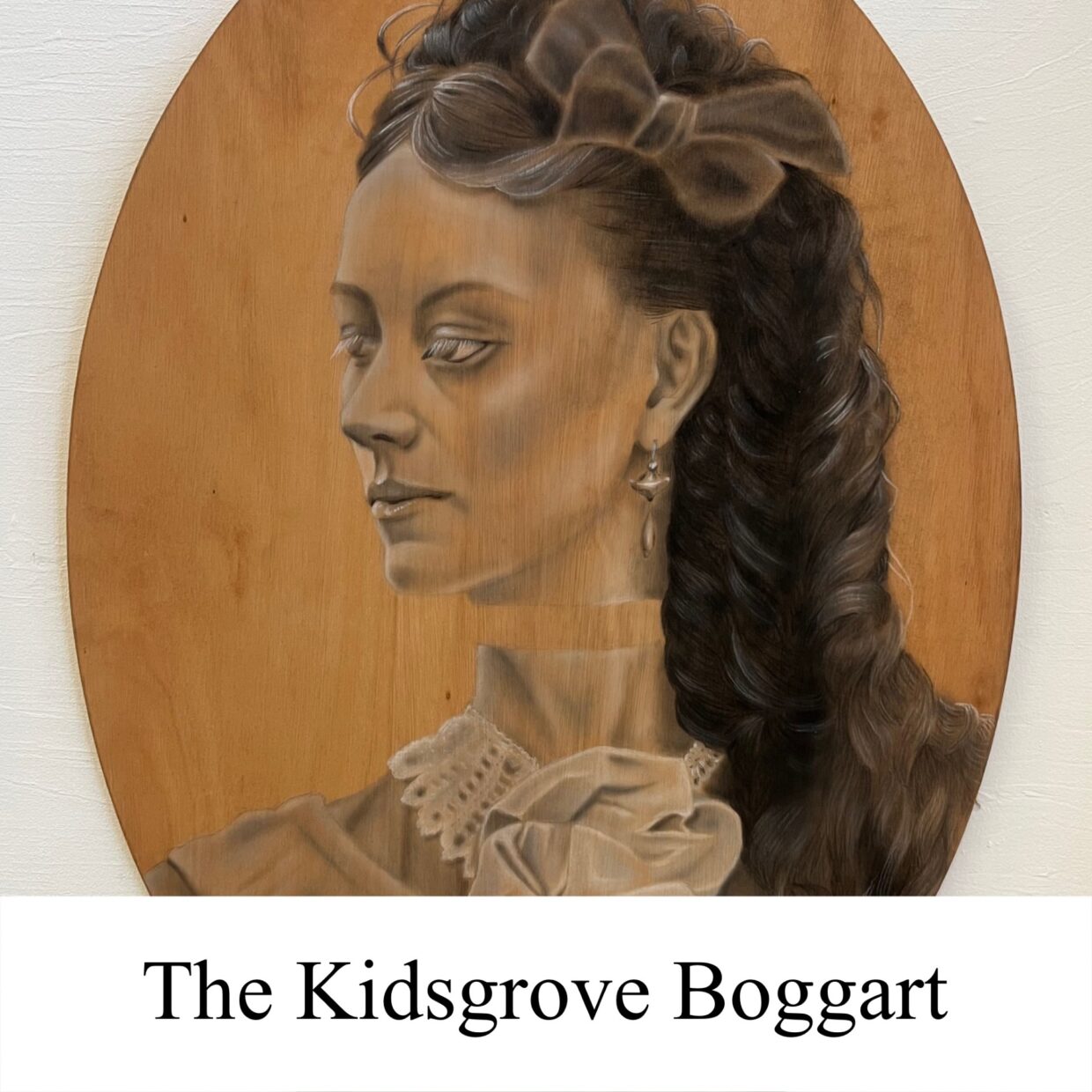 “The Kidsgrove Boggart” – charcoal on tea-stained plywood, 2024, 55cm x 40cm